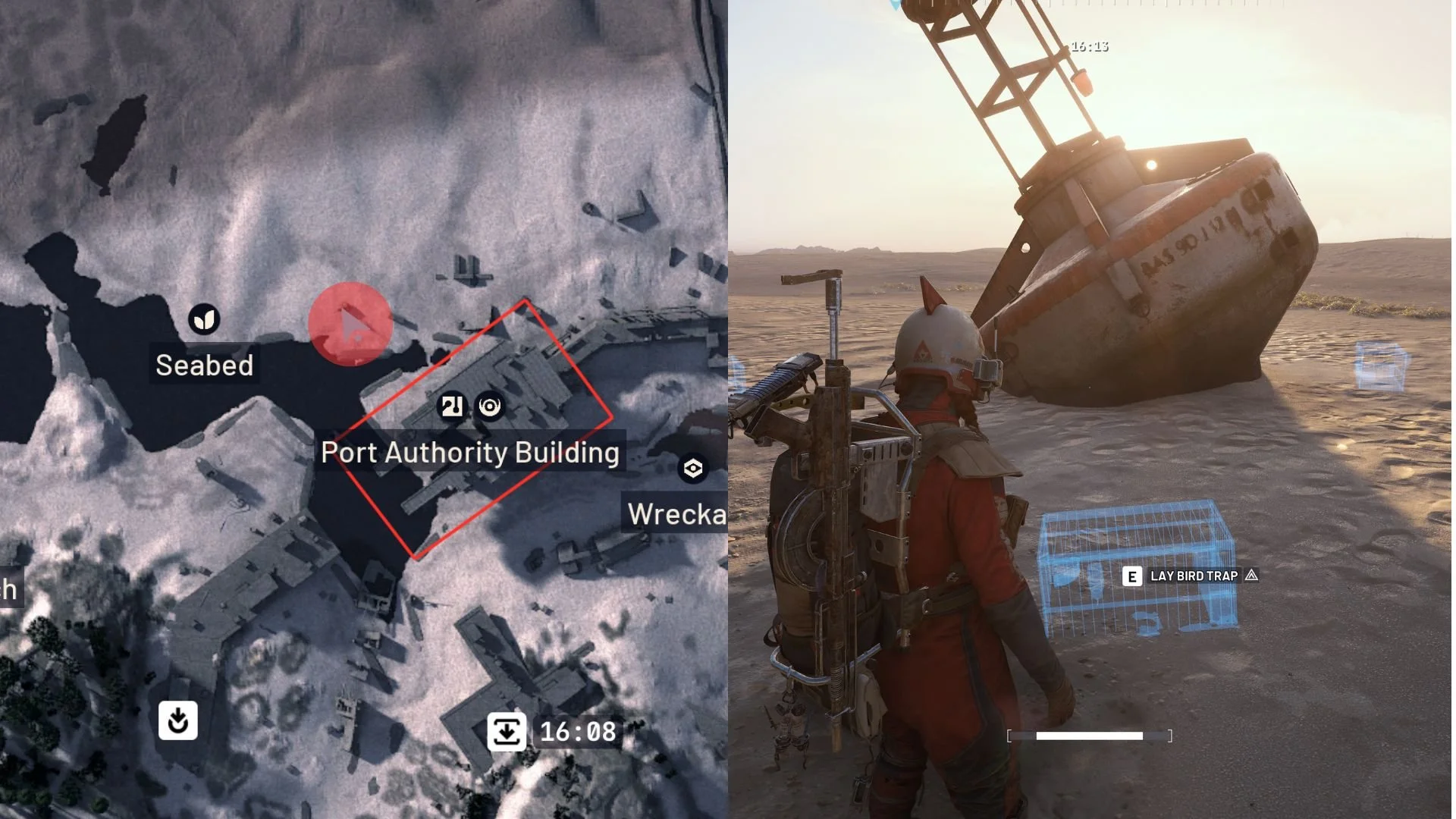As previously mentioned, you’ll need to visit the Riven Tides map to start the Avian Alarm. Specifically, you’ll need to travel to the Seabed, on the northern part of the map. There, you will find multiple buoys, and all you need to do is interact with the blue holograms around them. As a result, you’ll lay the bird trap, completing Avian Alarm’s Stage 1.