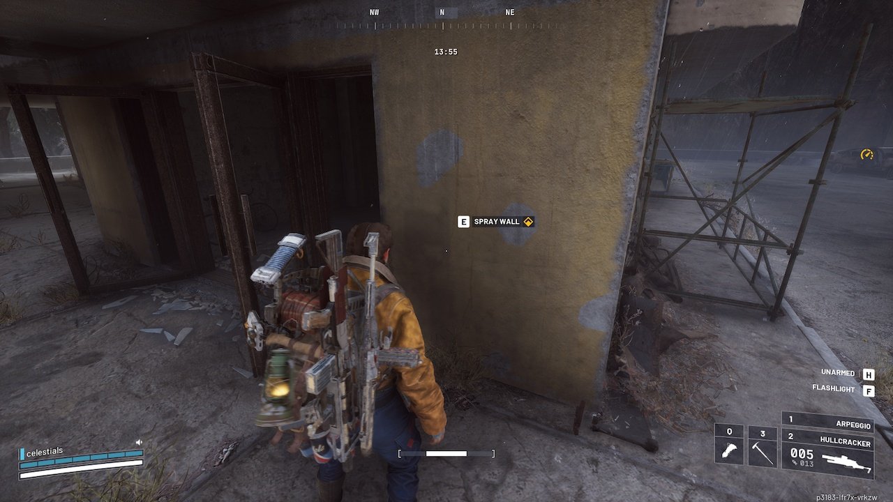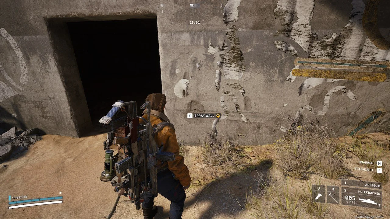 When I arrived, a Bastion was patrolling nearby, as well as multiple Arc drones. Your spray spot is on its western wall, where all the ivy is growing.