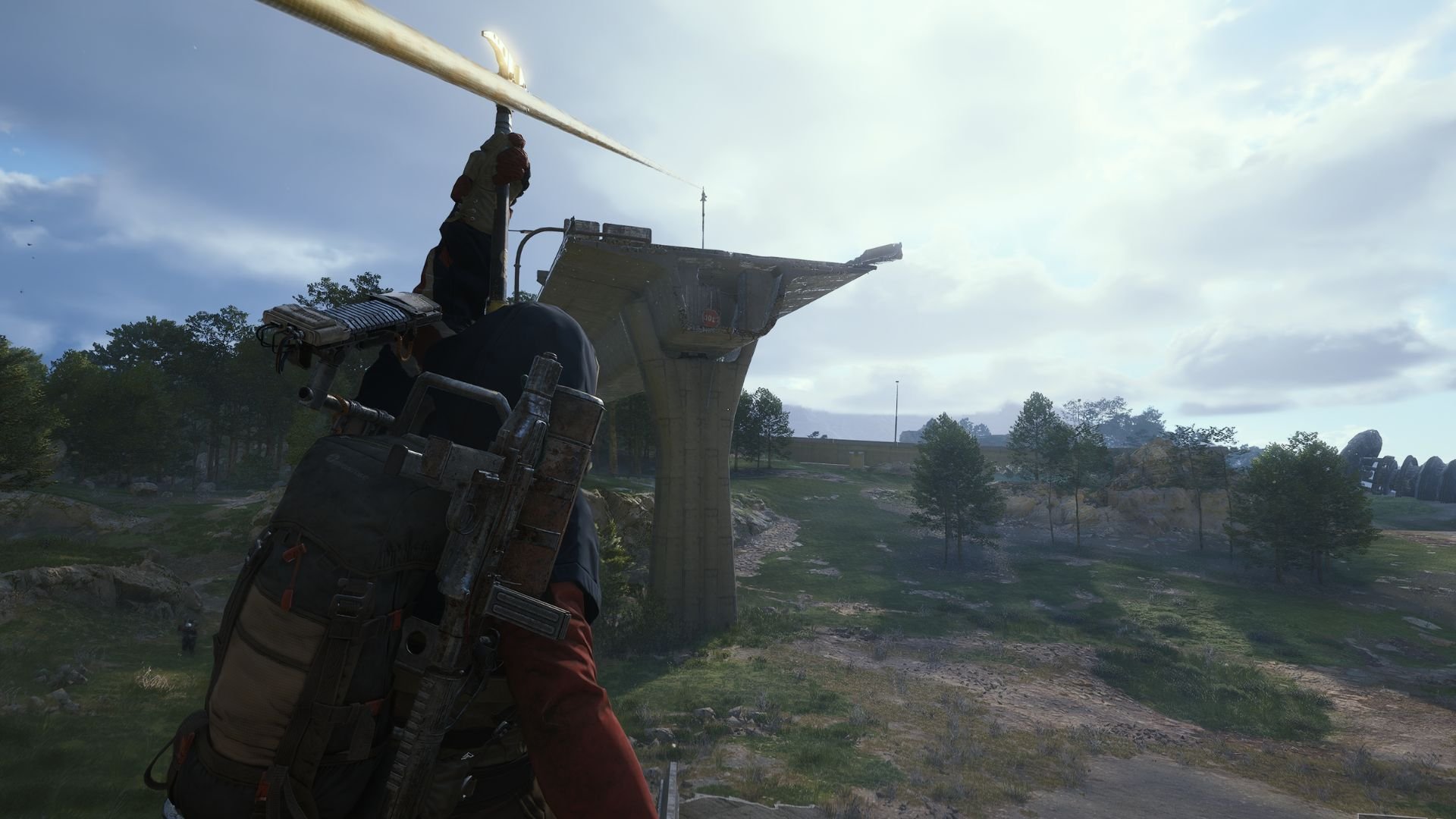 You’ll notice an opening inside the highway. Yes, that’s where you’ll want to go. Walk south, following the highway, and you’ll be able to climb above a ramp and onto the highway. Once you reach the edge of the structure, you can interact with the zipline to activate it.
