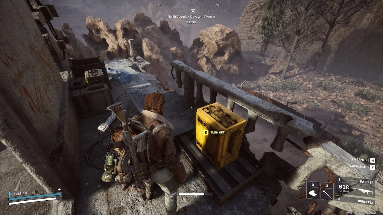 From there, you can reach the second power switch by heading east to the crumbled building. It’s sitting on the balcony, so make your way up by climbing on boxes below, and you can turn this one off.