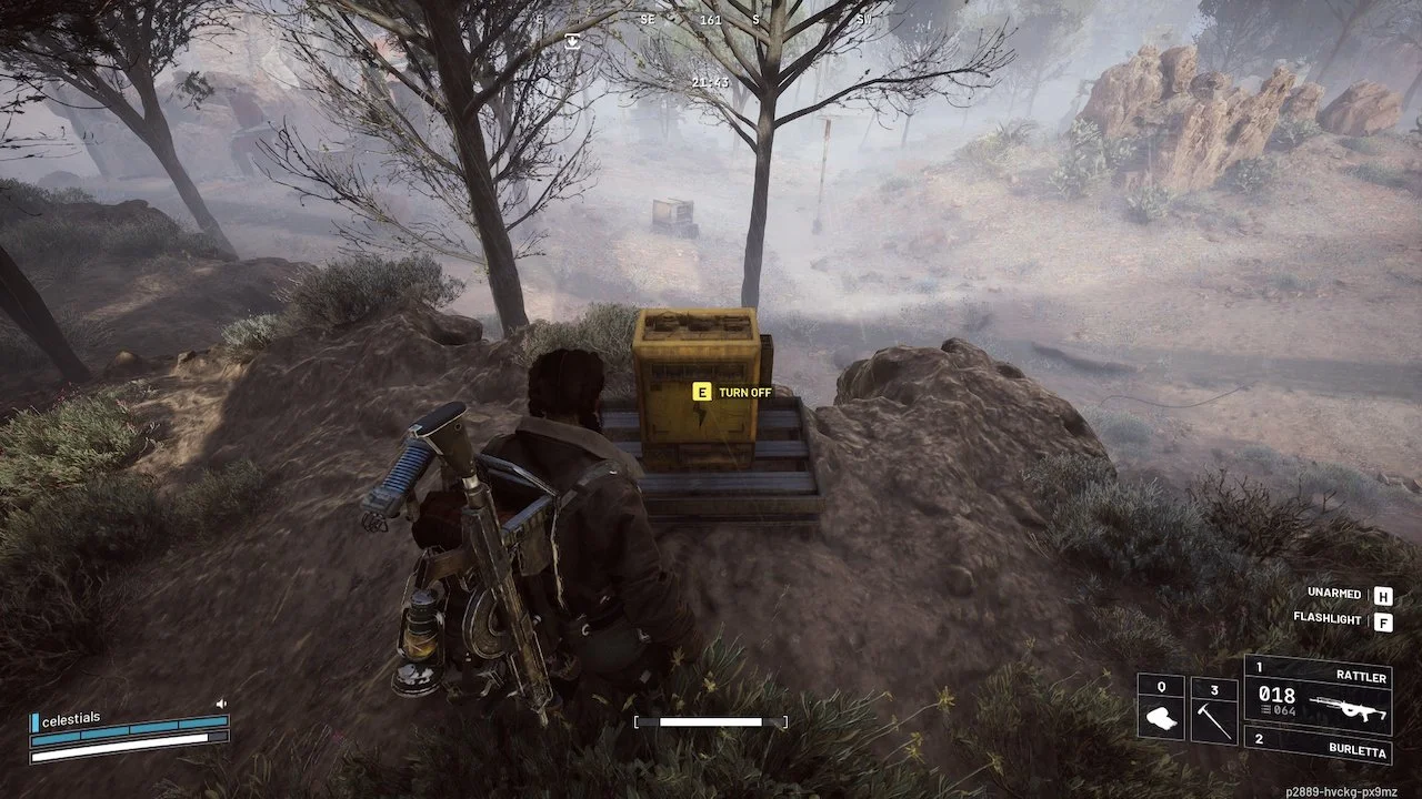 You’ll find the first power switch by walking north of the EMP. It’s sitting on top of a small cliff, so climb up and turn it off.