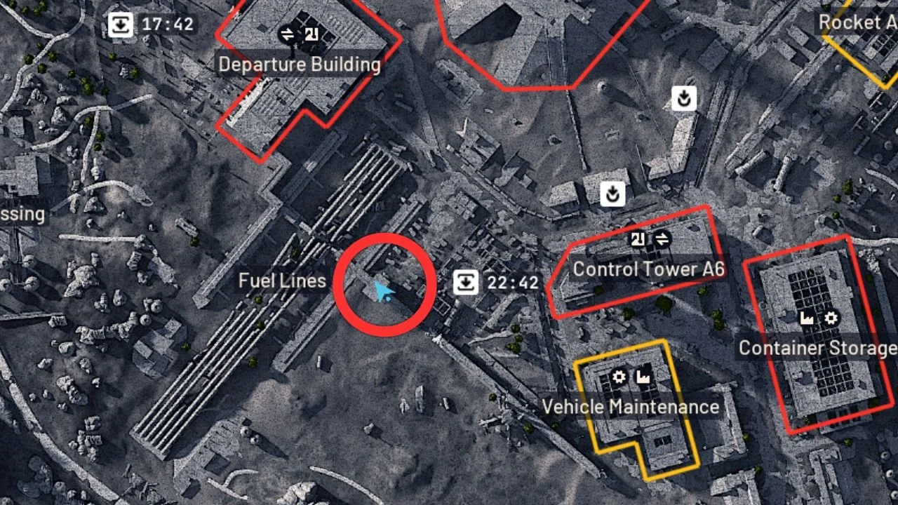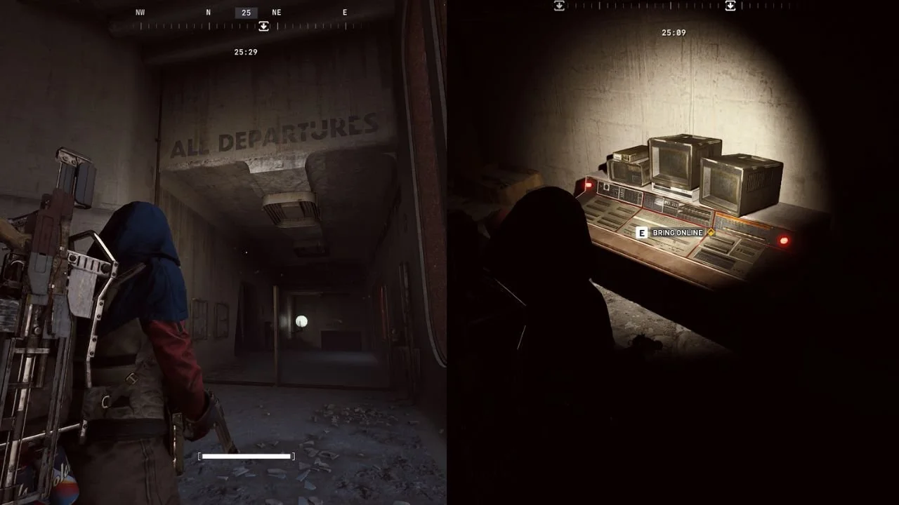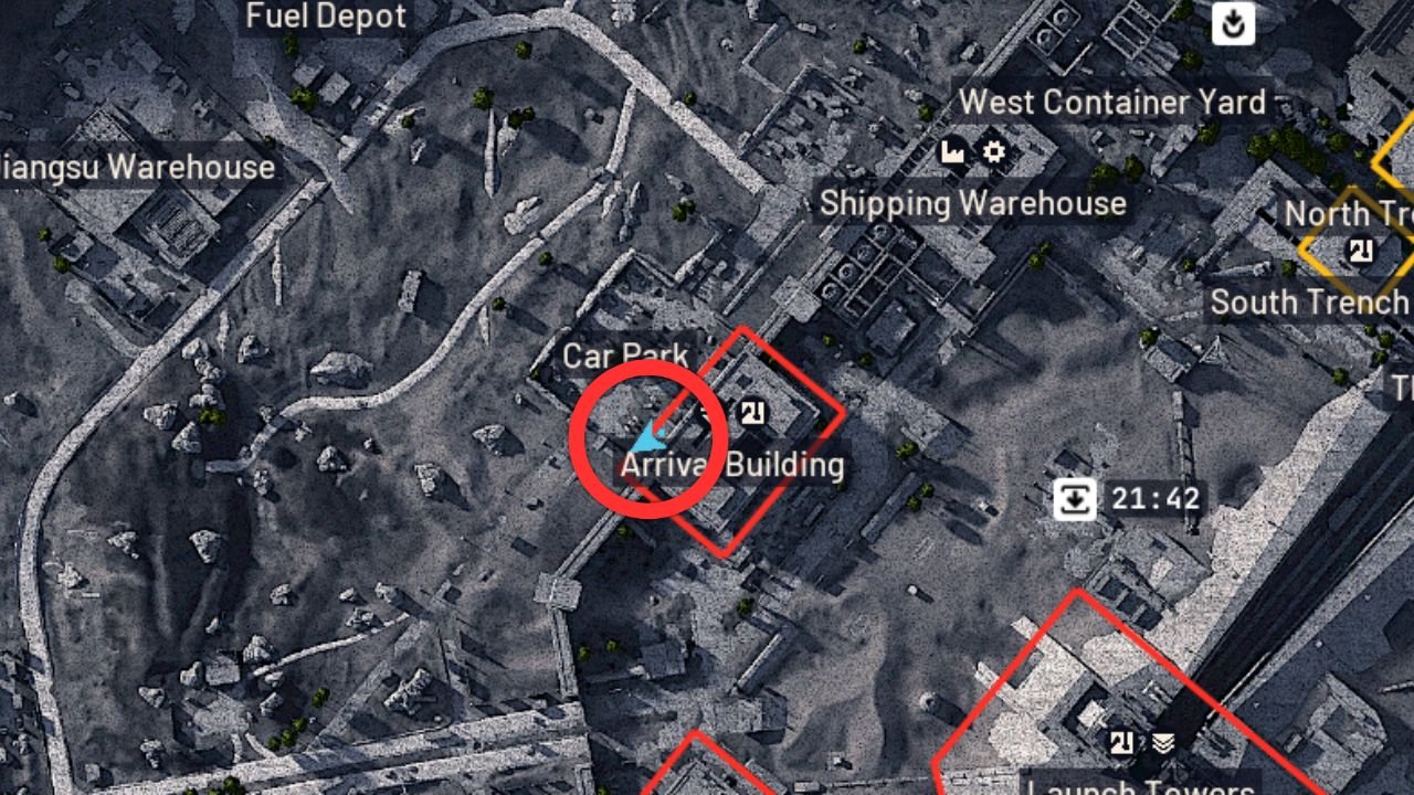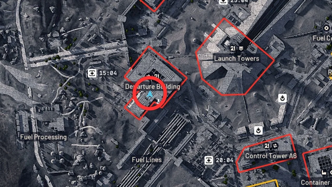 Northwest of the Guard Tower you were just at is the Departure Building. Once you arrive, head through the southern entrance and turn right. Walk down the hall labeled ‘All departures’, then walk into the room immediately on your left.