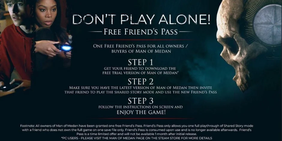 While we are all looking for things to do and new games to play, some developers have been providing cheap new games with discounts and sales. Bandai Namco has a little bit of a different idea on how to give players a new game to play by opening a second friend’s pass for their choice-based horror game Man of Medan! If you haven’t played this game yet, but know someone who owns the well-reviewed experience title then it’s time to buddy up.