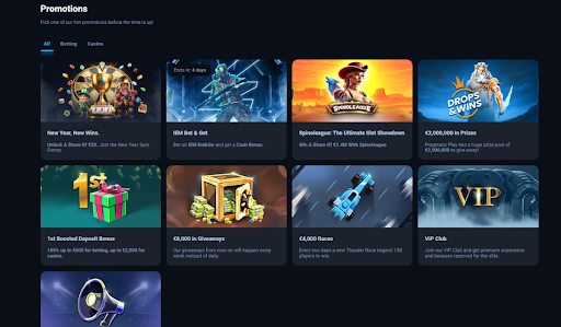 Thunderpick offers a first deposit boost of up to €2,000 (casino) and €600 (betting). Aside from the welcome offer, the casino also offers €8,000 in giveaways, €4,000 in races, and over €2,000,000 in tournament prizes. There is also a multi-tiered loyalty program that offers players several perks.