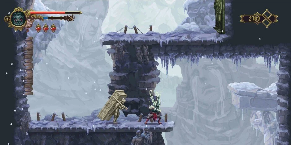 Fighting gets easier the further into the game you go as with every kill you gain a form of currency known as “Tears.” These tears can be used at certain shrines to purchase fighting abilities, such as the dash stab and further combo attacks. These abilities will prove to be incredibly useful when fighting both regular enemies and bosses. The other use for the tears are the purchases. Whether you are at a merchant or looking to have your guilt cleansed from one of the cleansing statues, this will cost you tears.