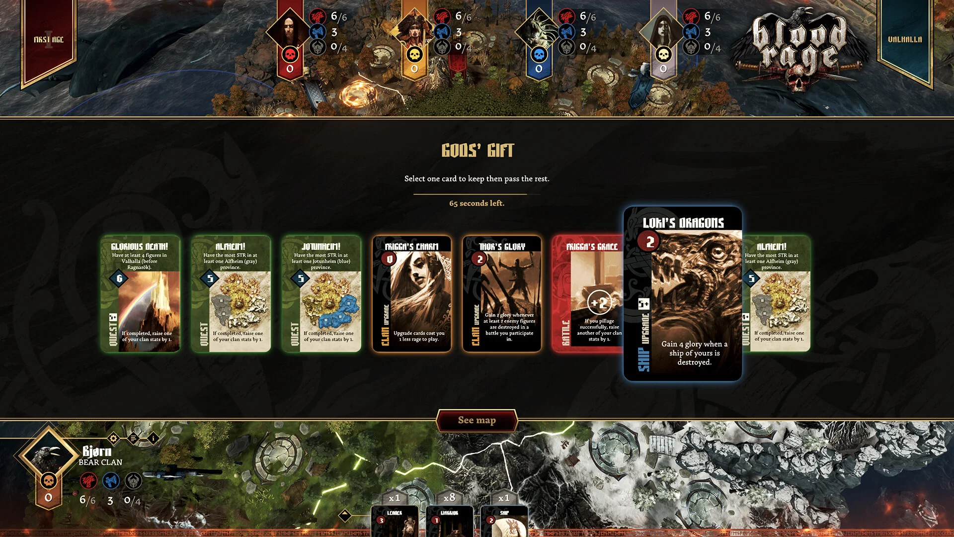 If we’re just evaluating how the game plays, then it’s loyal to the source material. Blood Rage: Digital Edition is a strategy game that combines card-drafting, variable powers, resource management, and all of the strategy required in a competitive game with up to five players.