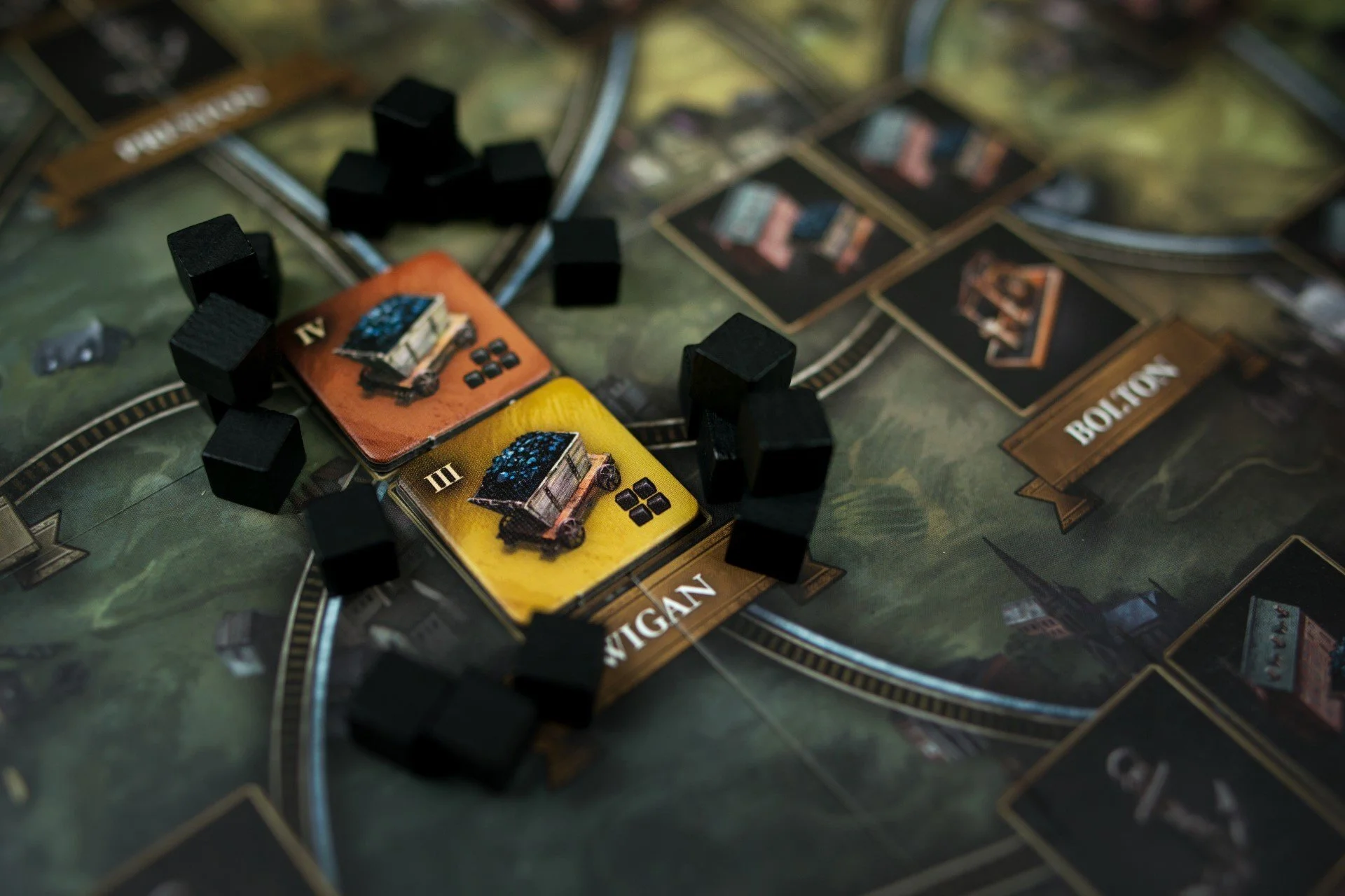 Through the Canal and Rail Eras, players in Brass: Lancashire will have to balance financial stability with explosive growth. Selling anything requires infrastructure, and that can be costly, especially in the Rail Era when everything runs on coal. demands that players aim to accrue substantial income values and high victory point totals in order to win the game. Fight for the best position on the board while using resources as efficiently as possible because the highest victory point total wins after two Eras of eight to ten rounds.