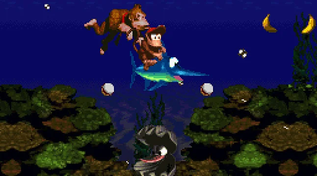 I want to zero in on my absolute favorite of this whole soundtrack, Aquatic Ambiance. Its multiple layers of atmospheric pads and synth strings helped establish the immersive environment for my first actual enjoyable underwater level. I still revel in its sheer beauty. I remember playing this level of DKC in my room when I was a kid, but here I am in my thirties, realizing what a masterpiece this is. The pulsing bass line is subtle enough to not walk on top of the slowly building synth textures, allowing the melody to freely flow on top of all its hypnotic excellence.