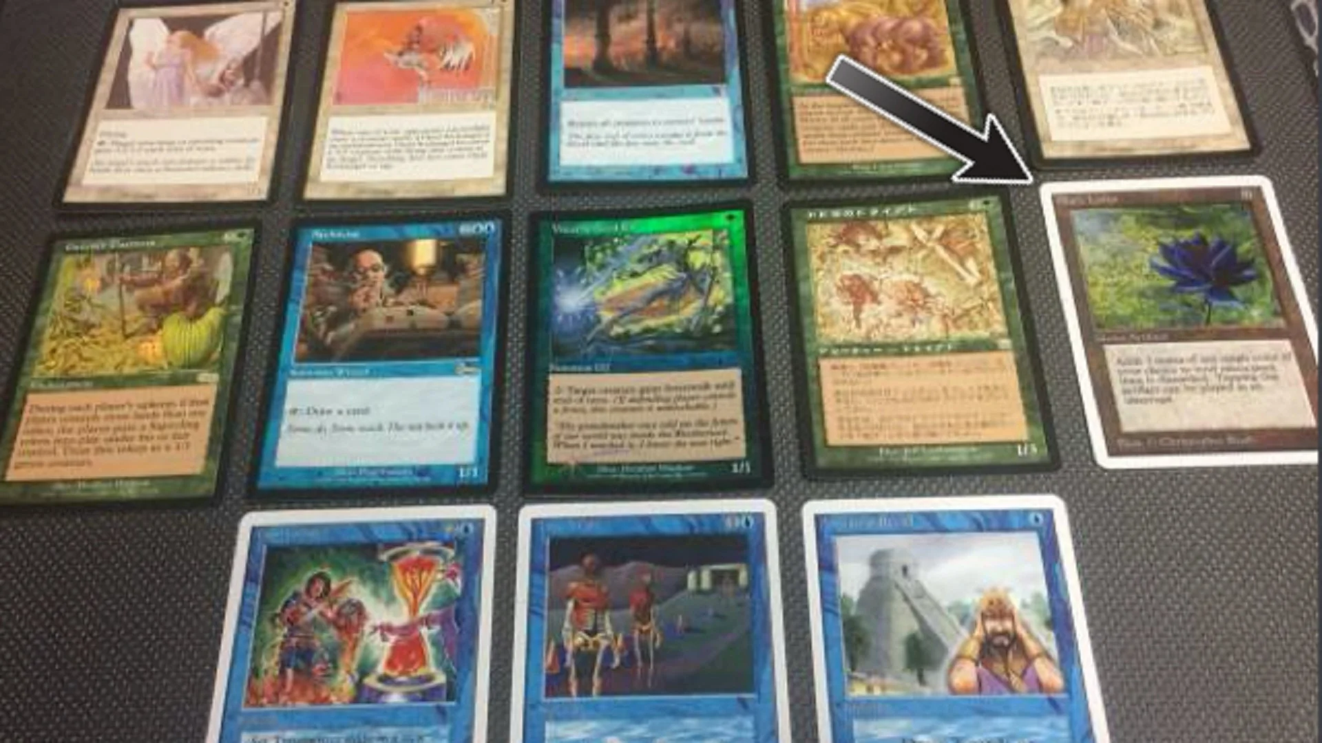 This mom found a collection of her son's Magic cards and decided to clear some space by offering them up online via an auction site for the Japanese equivalent of nine dollars. You see that card in the above picture with the black arrow pointing to it? That's the mythical Black Lotus which auctions for around $27,000 easy. Needless to say, people jumped on the offer quick.