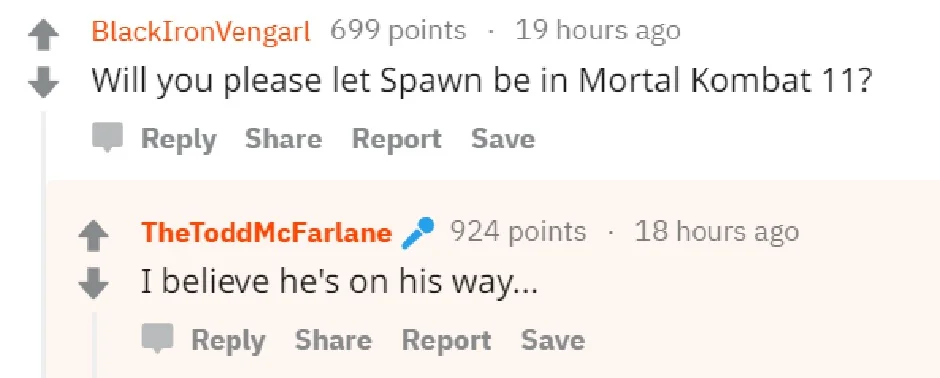 Announced last week at the Game Awards 2018, Mortal Kombat 11 has taken the internet by storm! With a brutal release trailer fans have begun to speculate which characters we might see in the game. Today we might have gotten an insight into one of the guest characters that could grace Mortal Kombat 11, Spawn! In a reddit AMA Todd McFarlane answered a question about letting spawn be in the upcoming fighting game with a simple “I believe he’s on his way…”