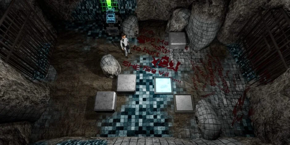 Aside from the actual puzzles, you can find little coffee machines and laptops placed around the levels. These are usually interactable and provide another tidbit of the story itself. These messages are where you can really see the character’s mind falling apart if the glitchy and convoluted reality didn’t do it for you.