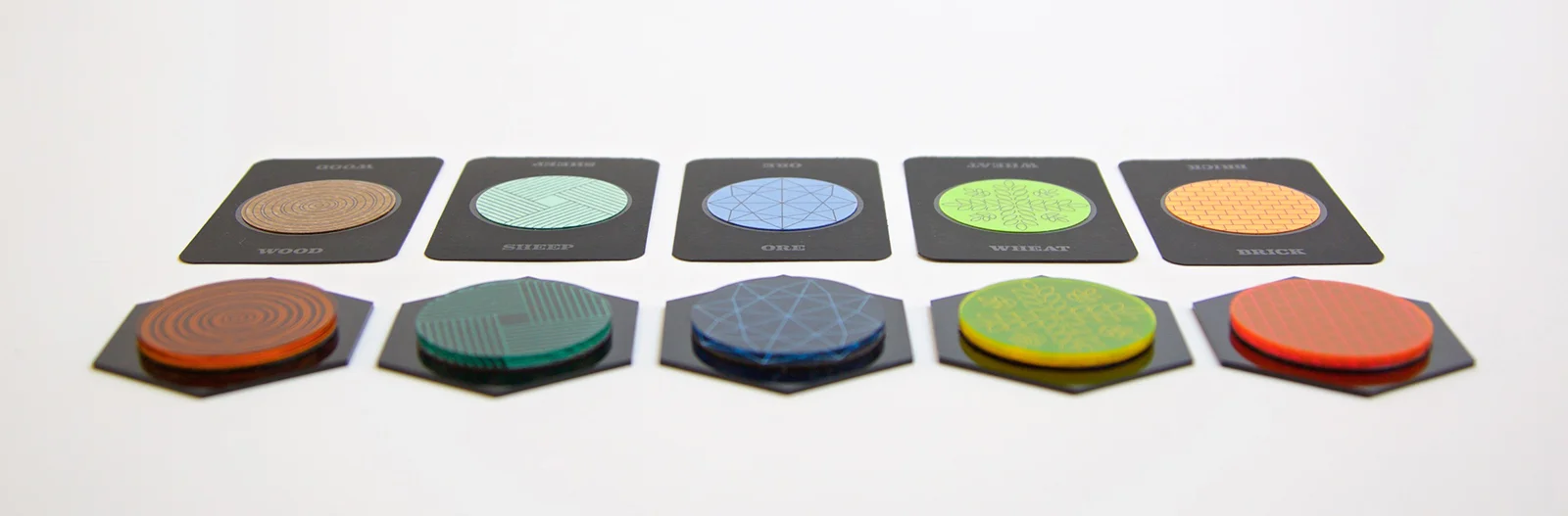 Other rule changes removed the pirate, building between turns even with 5-6 players, and the ability to take a resource when rolling a 2 and 12 as they are not present in this version. While the game is futuristic, your resources remain the same. The main reason for this is that the developers didn't want to force anyone to have to remember new resources again (thank you). While they remain the same...you'll notice their designs are vastly different from the original game...