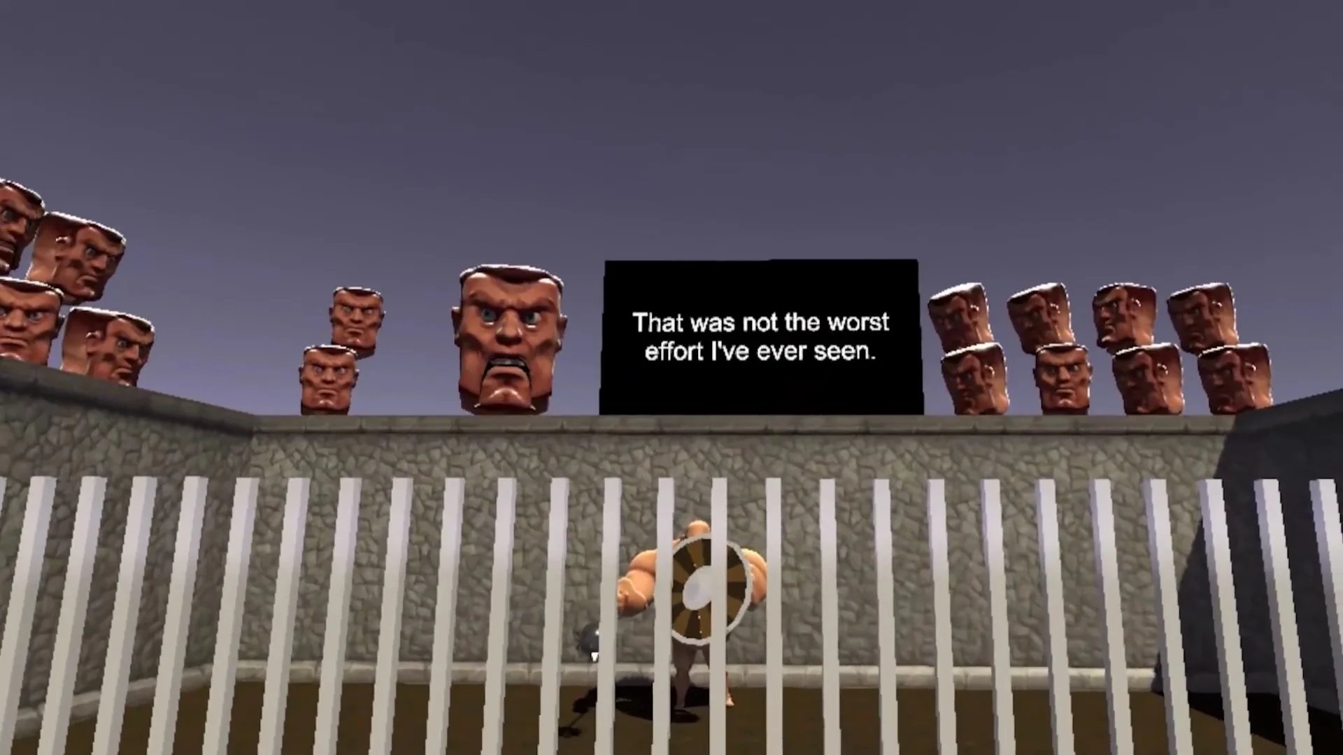 This is about the weirdest game that I've seen in VR! In Gladiator Simulator, you fight other gladiators for the enjoyment of a lot of floating heads that look like 3D versions of the Doom face. I can't really describe how goofy it is, you'll just have to watch the video, and if you have a VR headset download the game for free right here. The creator would like me to note that the game is still in very pre-alpha and not representative of the final game! It looks like there are still some bugs to work out, but it's a weird free VR game...how can you complain?