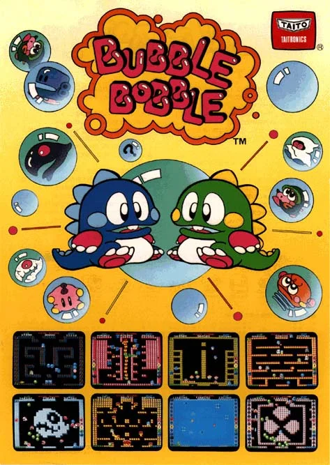 Two of Taito's most notable releases in the '80s were Elevator Action and Bubble Bobble. Bubble Bobble was noted for being a cooperative platformer game. But the game didn't really catch on it its day. It would be one of those titles vindicated by history. The protagonist, Bub would become Taito's unofficial mascot and appear in a few games beyond his native habitat.