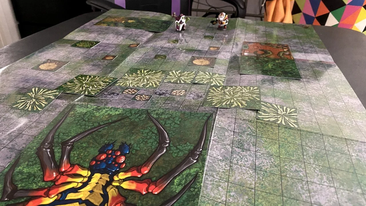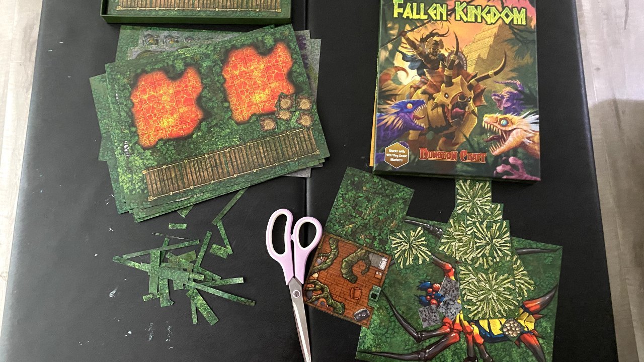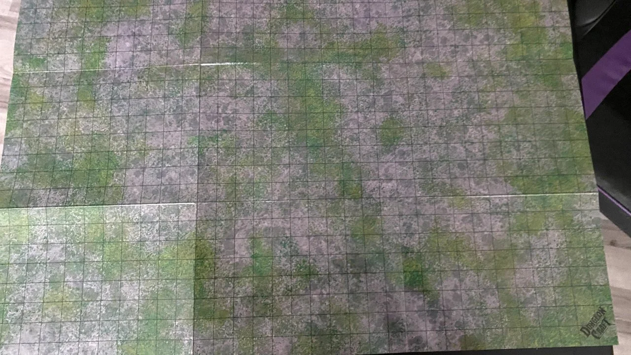 While the maps come folded for easy cleanup, it's a good idea to take them out a bit early before your session to allow time for them to flatten. Due to the map's texture, your Dungeon Craft tiles might slide around, especially if placed on the folds.