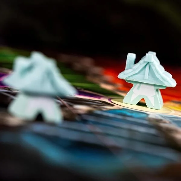 Players take turns either placing workers or retrieving all of their units from the board. Placing workers will guarantee a certain action on a certain hex tile—and it might instigate a battle. Retrieving workers brings them back to the Ready Area on your player board but also enables you to perform actions on your collected Tableau and Adventure cards. These two types of turns make up the core of Dwellings and will continue until one of two endgame criteria triggers—either a player’s sixth Dwelling is constructed or the final Realm tile is placed on the board. After that, one final turn takes place before endgame scoring.