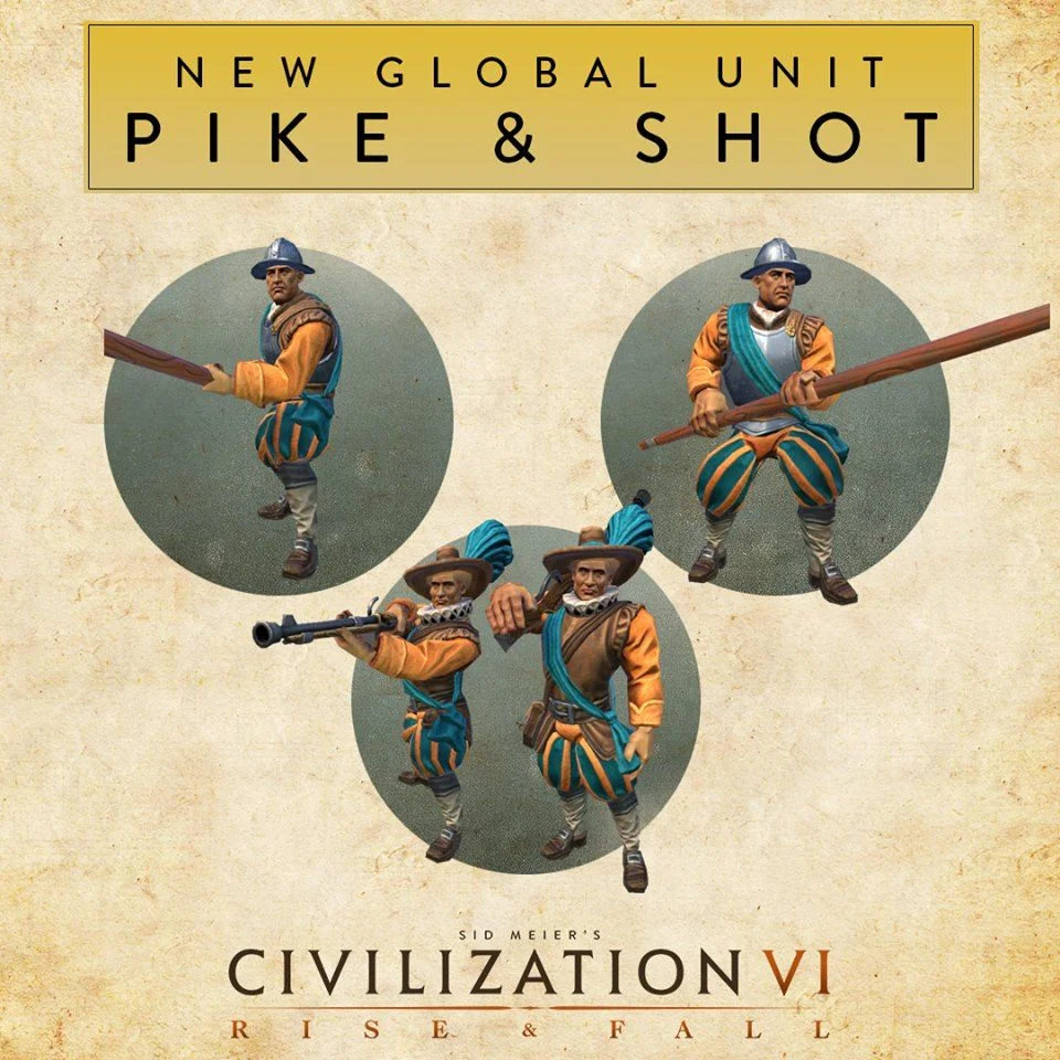 Renaisssance Era anti-cavalry unit. It has strong Melee Strength and upgrades from the Pikeman.