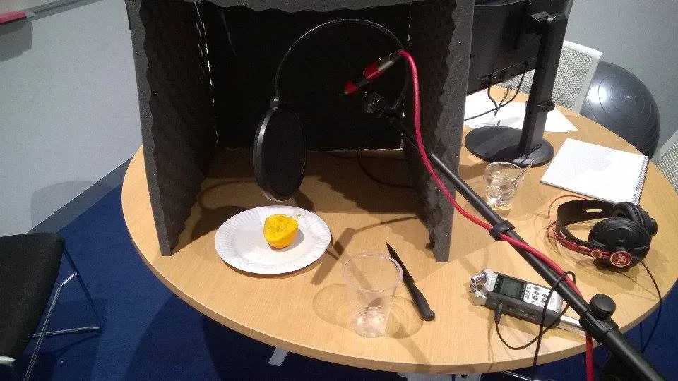 I unfortunately missed a sound design experiment that involved a flying piece of chicken and a mic propped next to splattering tomato sauce.