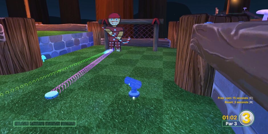Starting with classic putt-putt, you get the hang of the controls fairly quickly. Simply aim where you want the ball to go and then hold the swing button to adjust your power level. On PC, you will have to slide your mouse to adjust the power level, but I think using a controller gives you the best amount of control as I found the mouse to sometimes move at the last second. That is obviously human error, but I know I am not the only one affected by this.
