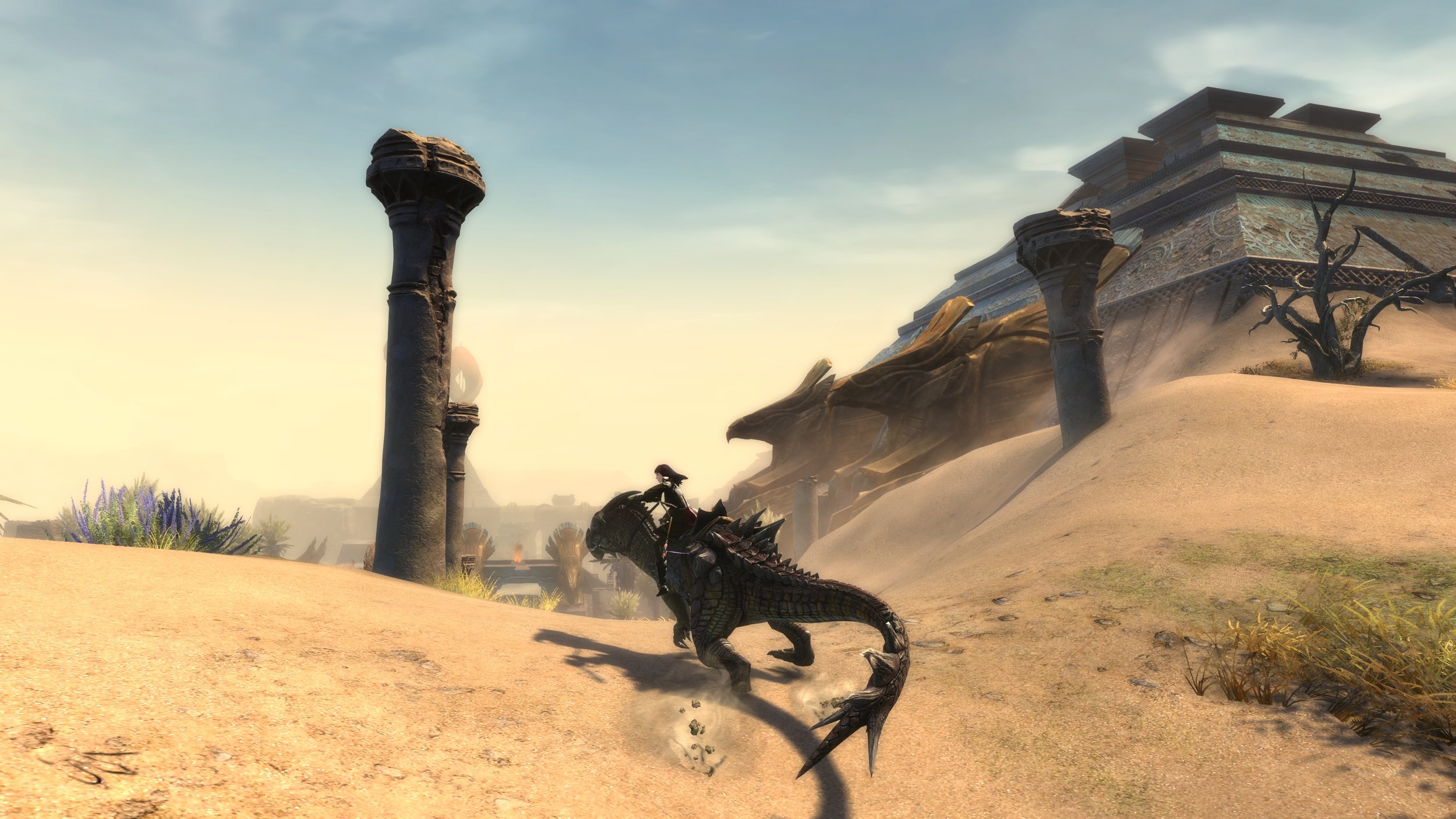 The latest expansion of the Guild Wars 2, Path of Fire, is upon us and boy oh boy, is it gorgeous. Wasting no time at all getting right into the action where the last expansion left off, you are immediately shoved into a beautiful yet dangerous desert world. With the engaging story line, sweet environments, and the awesome Raptor mount, I am enjoying my time diving back into GW universe and kicking trash with my Elementalist.