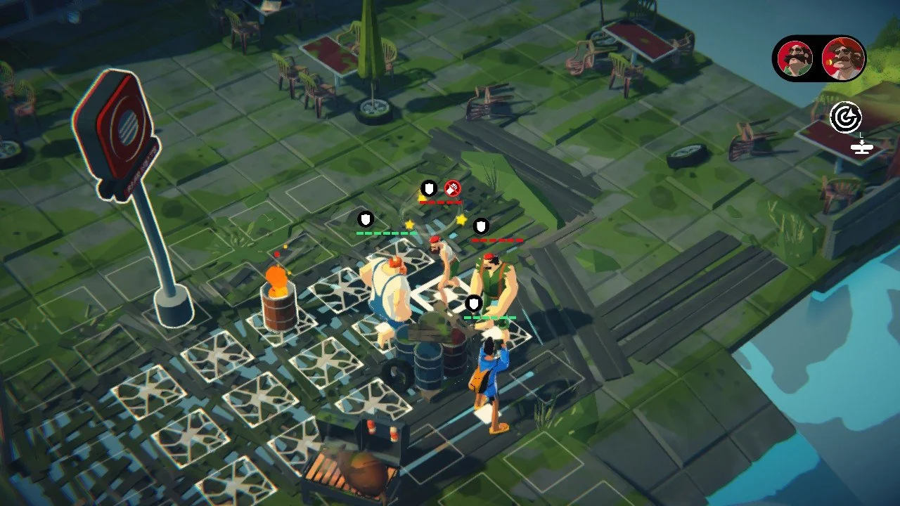 The combat system uses a grid format, typical of turn-based games. You move a few spaces and then attack if within range. What sets Highwater apart is its interactive environment—you can use shopping carts as weapons, topple store signs onto enemies, or destroy obstacles for tactical advantage.