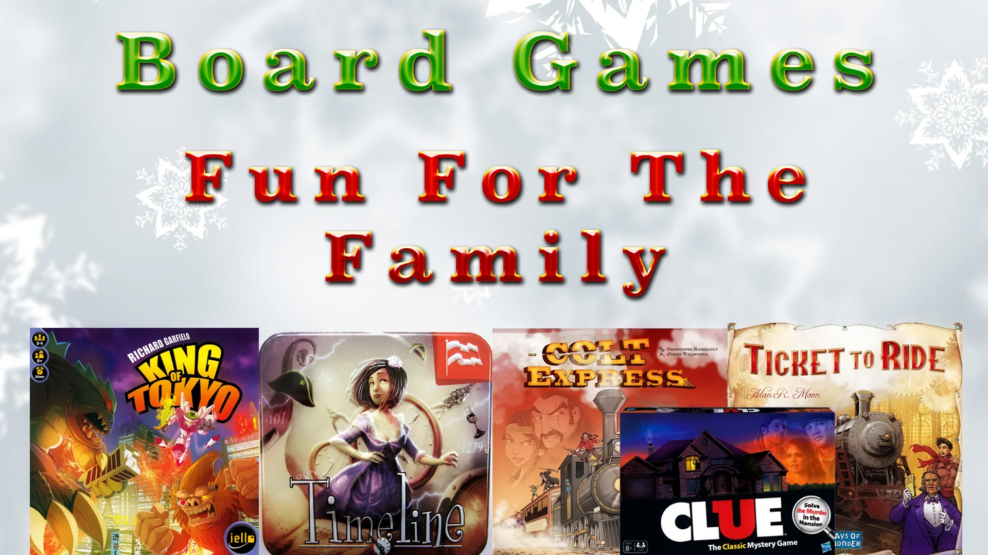 Fun For The Family Games: King Of Tokyo, Timeline, Colt Express, Clue, Ticket To Ride