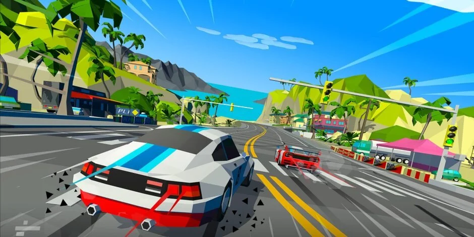 I couldn’t believe my eyes the first time I had seen Hotshot Racing. The art style and gameplay layout were like traveling back in time to the days of my childhood. The oddly-shaped characters and cars with stark lines and daring colors blanket the game in a retro glow. Upon playing it I realized that it’s not exactly like the games I played back then. In some aspects, it’s better.
