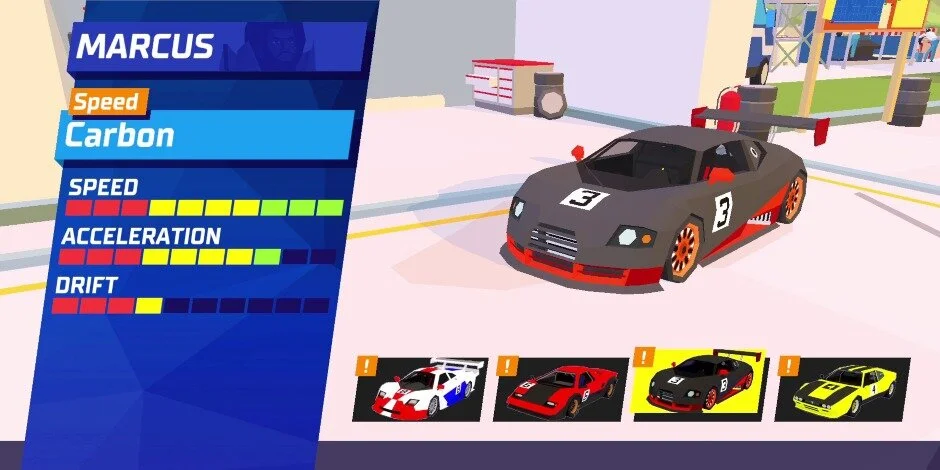 Firstly, the driving that has been created here is deeply satisfying. It’s like playing a game from the past but with finely tuned controls. If you want an added layer of control over how you can handle your car, you can switch between automatic and manual shifting. Each car has it’s own attributes and a different overall feel to it from one another. Drifting is smooth and especially easy to get comfortable with.