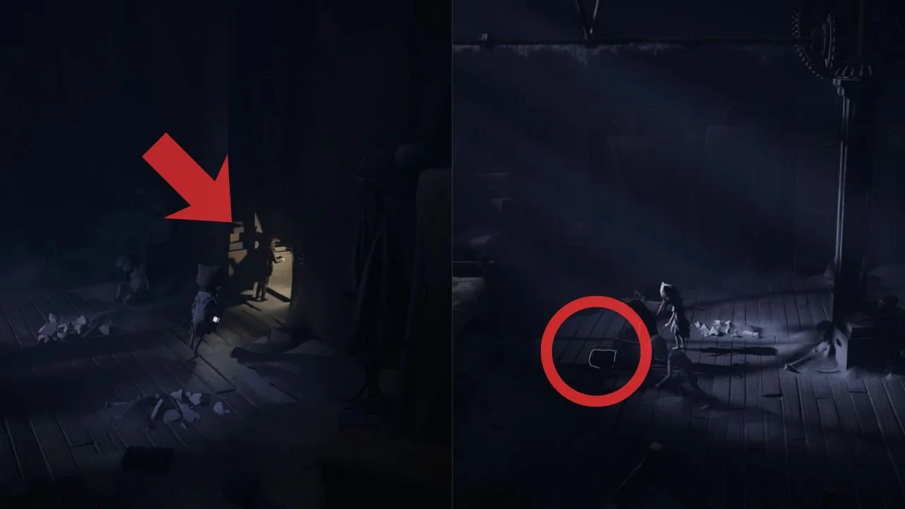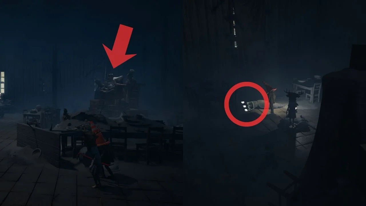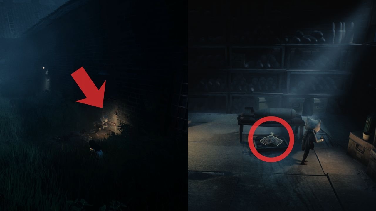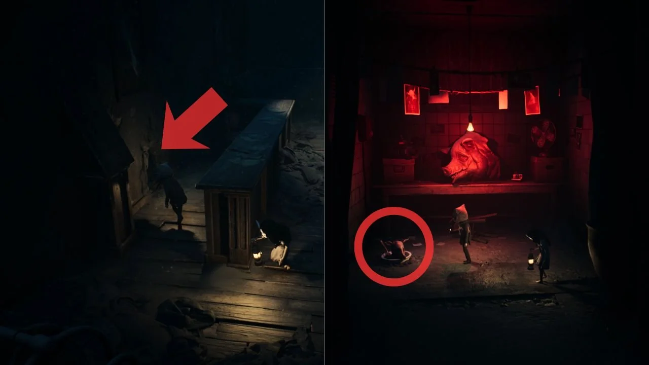Upon making it to the village, lift up the garage to find a clothing shop. Head to the left behind the counter to find a crack in the wall. Crawl through, and you’ll be in a room with a giant pig head and a smaller Pig Mask on the ground.
