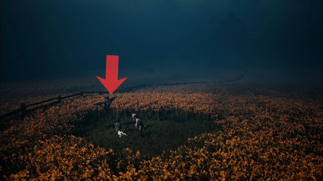 The next mask you’ll find is hiding amongst the orange flower field. Head to the left side of the field until you find a small clearing with a scarecrow. Hit the scarecrow with your crowbar, and then kill the critter to get the Deer Head.