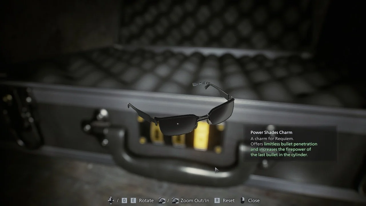 Once you input the code into the briefcase, it will open and reveal the Power Shades Charm. This charm, once attached to Requiem, offers limitless bullet penetration and increases the firepower of the last bullet in the cylinder.