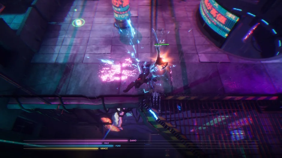 The style in itself is not very new or unique, but it is appealing and great for the gameplay. It allows characters and map to be more monotone and visually relaxed while the bullets, melee weapons and dashes are very clear. This means that the gameplay is well seen by players and very visually entertaining while being informative. The Hyper Jam official page calls it a “neon-soaked brawler,” which is the perfect way to describe it overall.