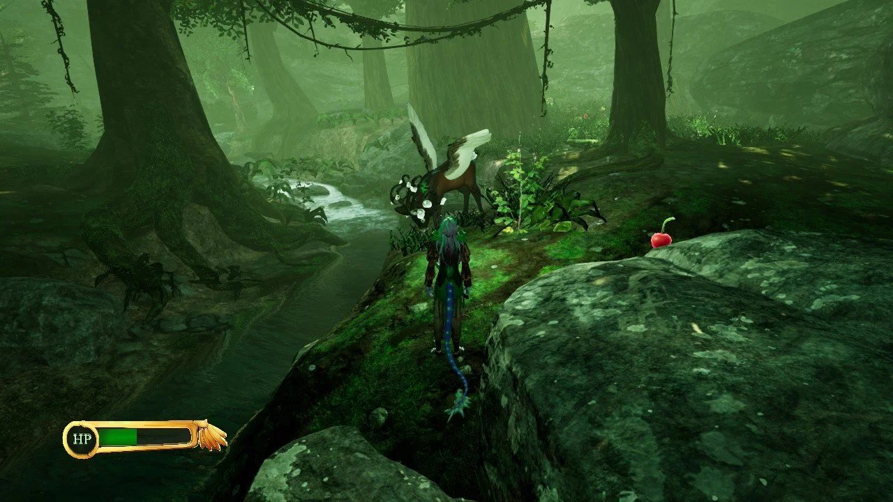 The demo is a small playable area of a mystical forest, where the player takes control of the long-eared, long-tailed forest guardian creature Azure. As Azure, a player can collect fruit, fight poachers, and attempt to be smooth with newly-arrived companion character Samayra. There are also winged deer-donkeys, a very good-natured dragon, and flower-raptors.