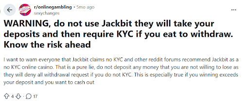 KYC: Jackbit claims "No KYC" but requires it at withdrawal. Moonbet: genuinely none under $2K.