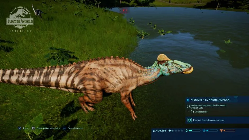 Releasing the first ever dinosaur in your park is a memorable moment in Evolution. The satisfaction and sense of wonder once the dinosaur steps out of the Hammond Creation Lab is a cinematic experience. Of course, breeding and taking care of dinosaurs is not as simple as it seems. A Ranger Station is required to dispatch vehicles to maintain and fix enclosures, resupply feeders, take close-up photos of the dinosaurs, and medicate sick creatures. The best part of this job is the ability to do the tasks automatically by issuing commands, or by driving the vehicle yourself. The same is true for the ACU Center, which houses a helicopter that you can use to tranquilize rampaging dinosaurs on a safe distance.