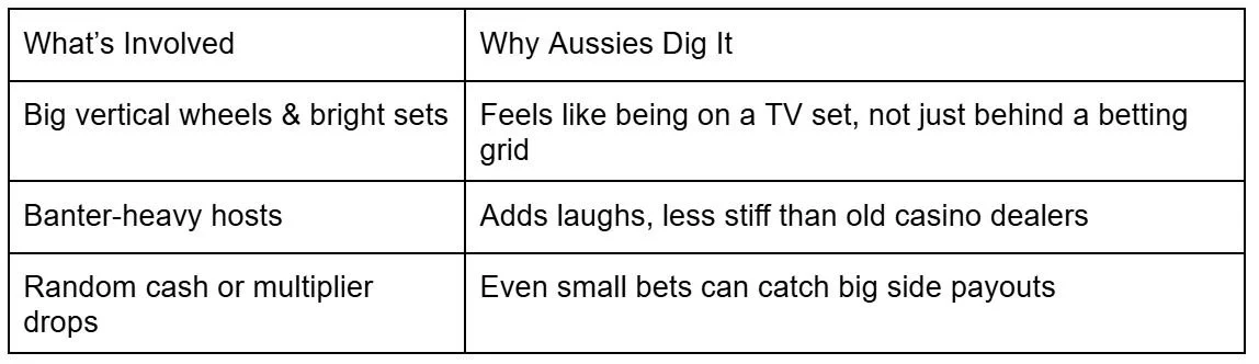 Let’s be honest: Aussies love the social side of a punt. Even at the local RSL, it’s half about the company. Live game shows bring a slice of that to online casino life.