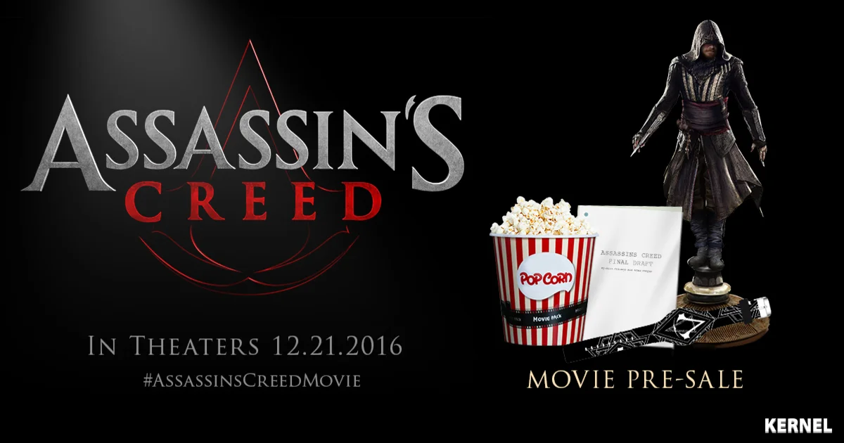 Movie studios are always looking for ways to market films in such a manner that they create early revenue flow and provide data on audience reactions and behaviors to fine-tune the target audience of marketing campaigns, and that’s exactly what a company called, Kernel, has set out to do. Kernel was created with the mission of creating hype for upcoming feature films and to convert that hype into revenue by pre-selling movie tickets, not just that, but to exponentially increase the cash flow by offering pre-order bonuses such as, t-shirts, digital downloads upon home release of films, exclusive content in said downloads, digital downloads of the scripts, posters, PVC and Funko Pop figurines, and many other collectibles depending on which package you pre-order. Oh wait, did I not mention that? Yeah, well there are tiers on how much you can spend for a package of pre-hype stuff for a movie that may or may not be terrible and not live up to your expectations, not unlike video games, and we’re talking Kickstarter level tiers here, ranging from $25 to $1,200 such as in the case of Assassin’s Creed.