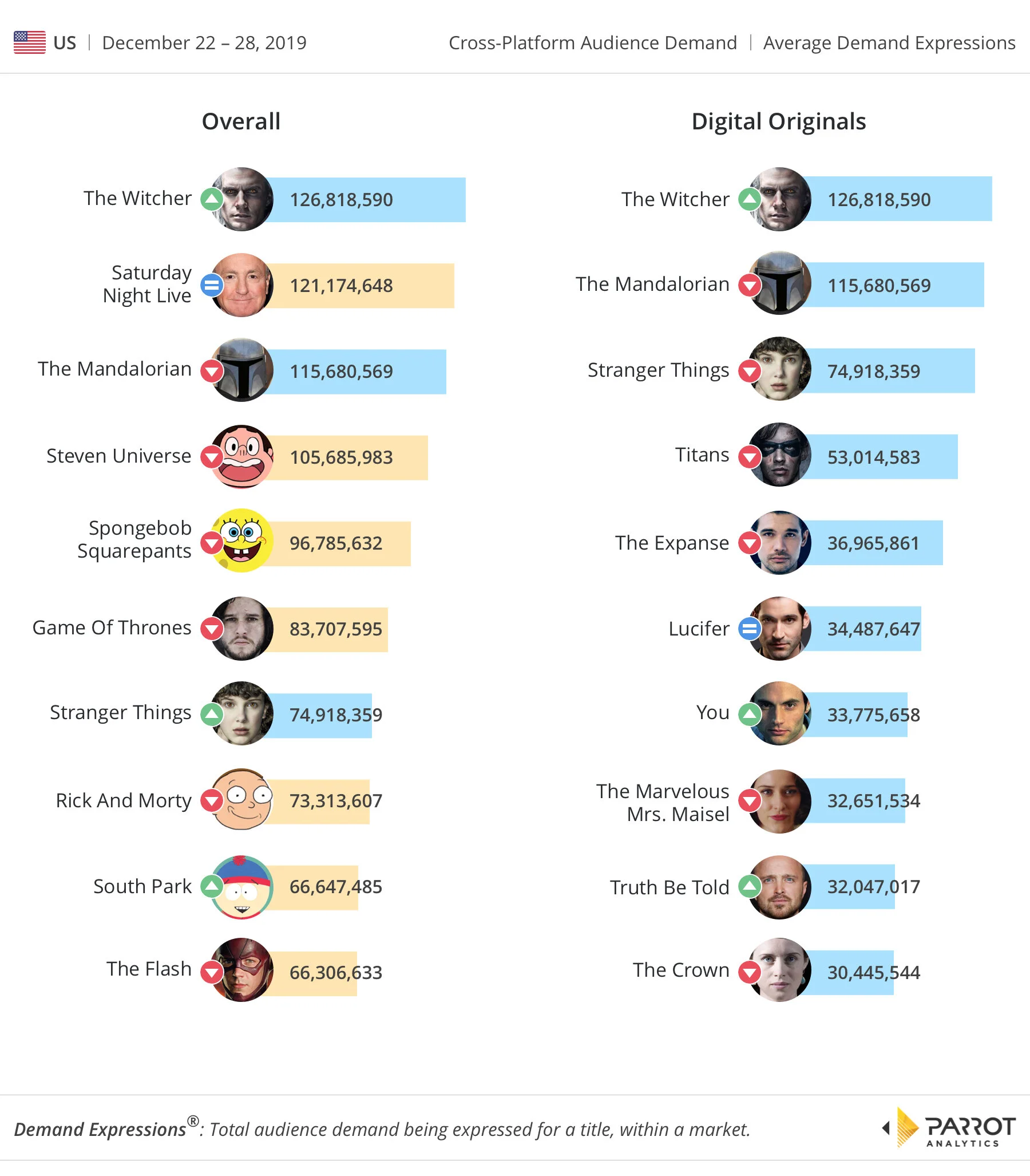 According to Parrot Analytics, the epic fantasy from the streaming giant is the most in-demand show right now. Not just digital originals but across all platforms. The Witcher has even beaten The Mandalorian, the flagship show on Disney+.