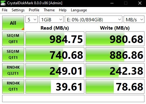 OWC boasts that the Envoy Pro Elektron 1TB Portable NVM SSD is 2x faster than other portable SSDs. It can actually get up to 1011MB/s given the situation. I ran a test on CrystalDiskMark and came to find that it does exactly what OWC says it does. I was able to get it just shy of that 1011MB/s and am extremely pleased. Keep in mind that this is simply running off of a USB 3.2 Gen 2 so it’s pretty amazing to see how quick it is. My PC port is actually only a USB 3.1 Gen 2, so I’m sure that made the slight difference.