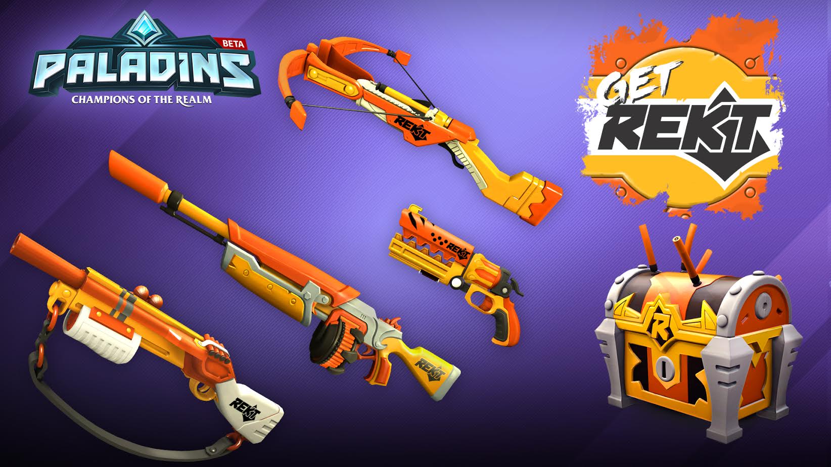 Nerf guns, Hulk Hogan, Drybear and so much more are on the way to Paladins. Of course...they don't actually call any of those things they're adding to the game that because who needs a copyright lawsuit, but you get the idea. OB50 is out now, and if you're wanting to get yourself a sweet Nerf skin make sure to follow our Twitch page as we'll be giving out skins with wins very shortly! If you got money and don't need my charity you can purchase a REKT chest containing 3 weapon skins for 150 crystals. Check out the full trailer for OB50 below and get more details about the rest of the cool stuff coming to the game.