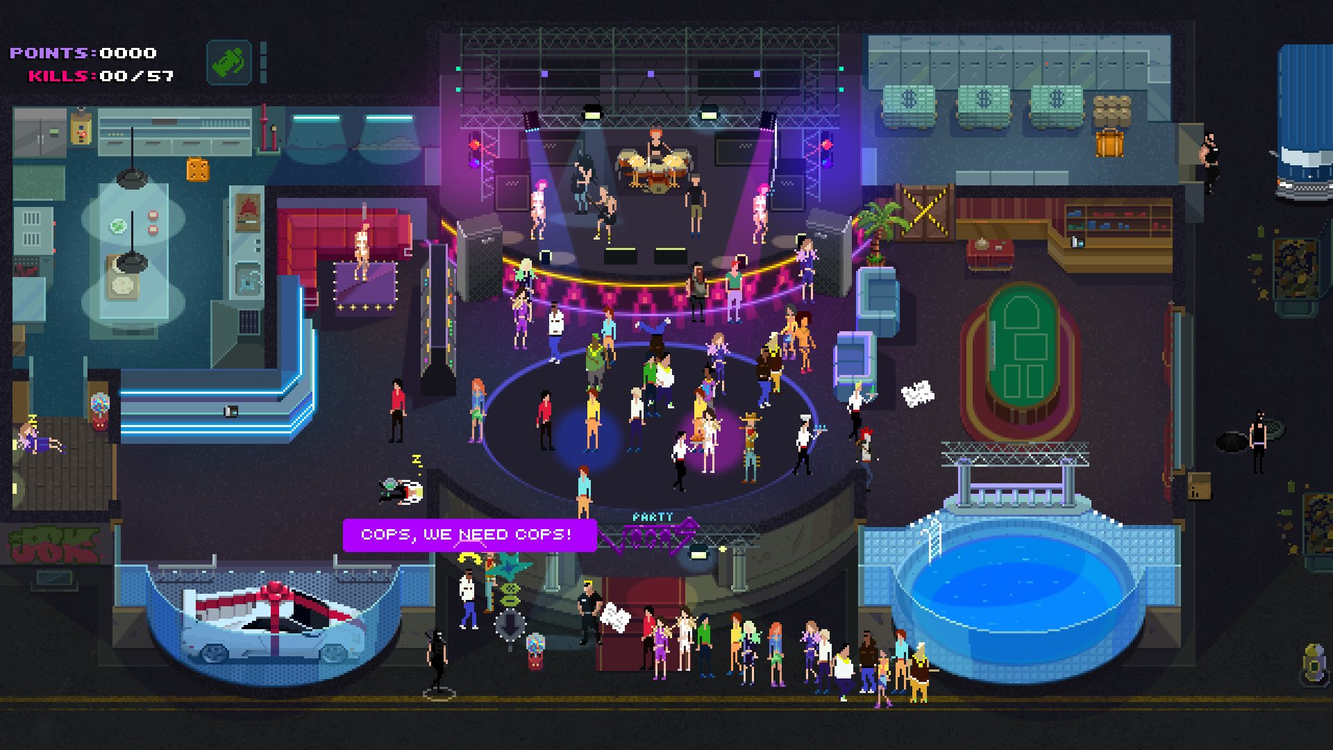 We’ve all been in that situation when you have a job or exam that requires you have to get up early, and every second of sleep you can get the night before is a make or break type of deal. And then there's one major problem: that house or apartment next door has pulsing, Earth-shaking bass and/or a drunken screaming match lasting until 3AM. In Party Hard, you play as someone in a similar situation, except he goes way beyond the edge of sanity and unleashes fury on unsuspecting party goers.