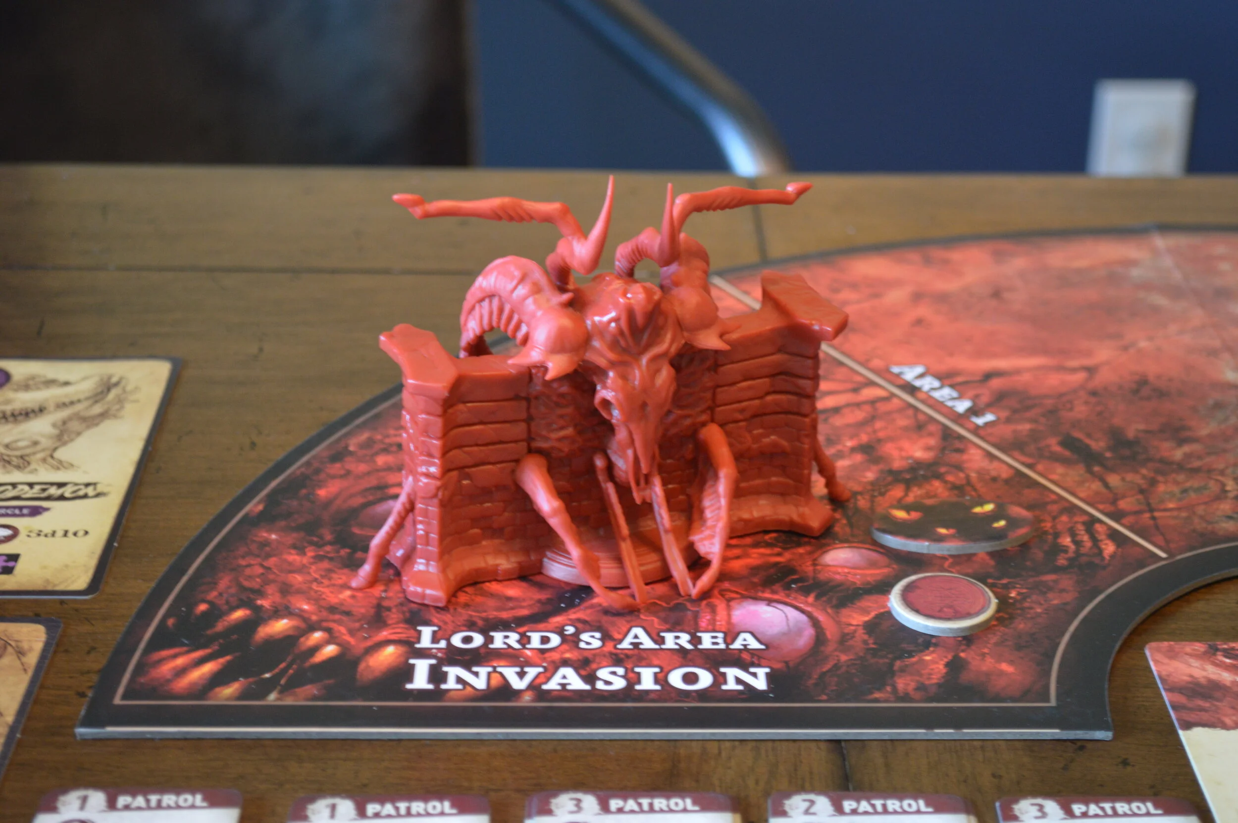 Players must defeat the Lord. It’s the only way to win and they’ll have to make it past a lot of demons in order for that to happen. But if they bide their time and don’t engage, the Lord will simply advance closer to the end of the map. If the Lord ever arrives in the start area, or if the Doom tracker ever reaches 13—signaling the inexorable push of the demons—then the players lose.