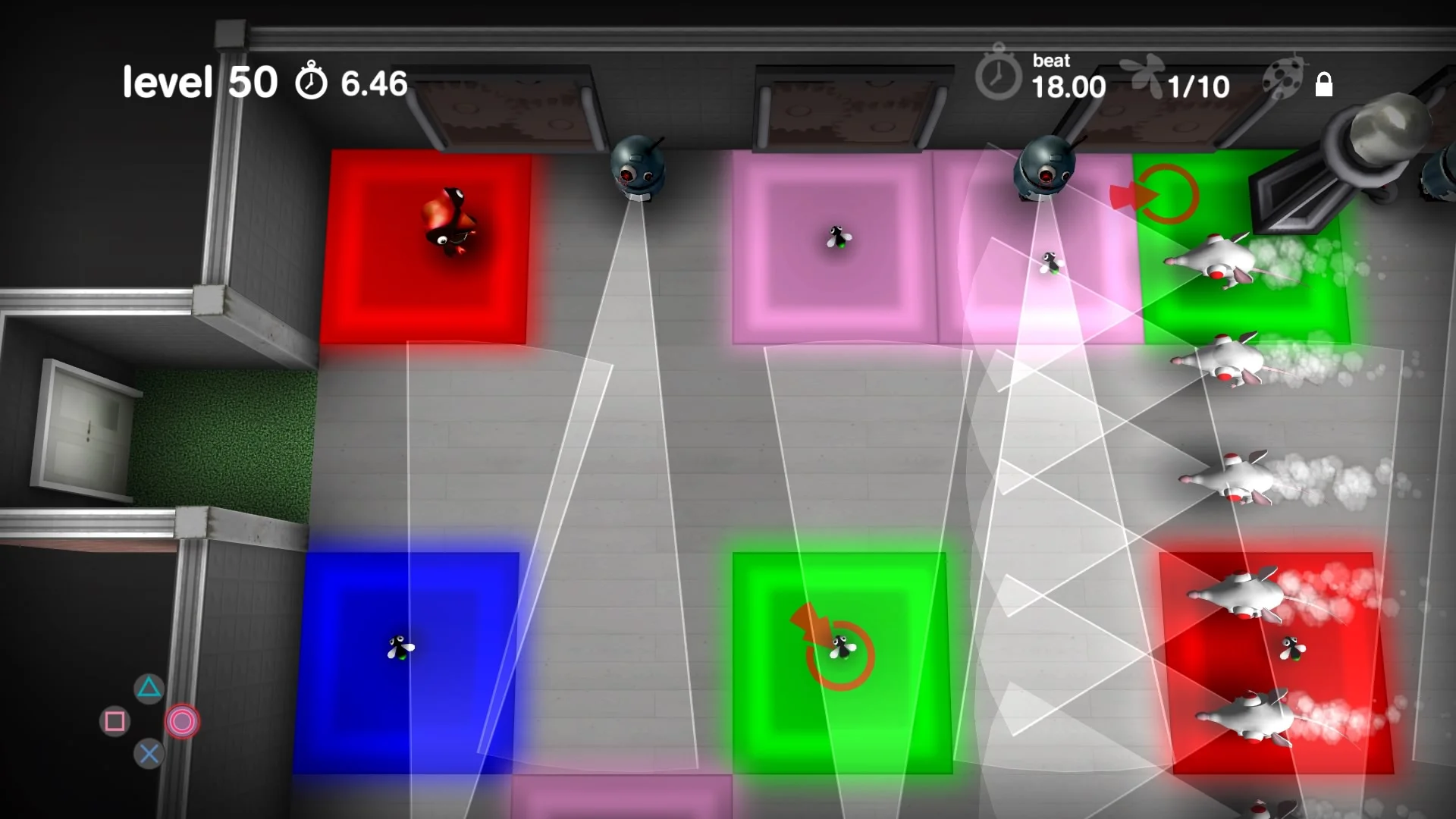 Every level got slightly harder and harder with a new enemy or tool, such as colored rugs that you can blend with to hide from detection, is added to help you get through more complex areas. It even gets to a part where the colored panels change and you will have to change along with it in order to stay hidden!