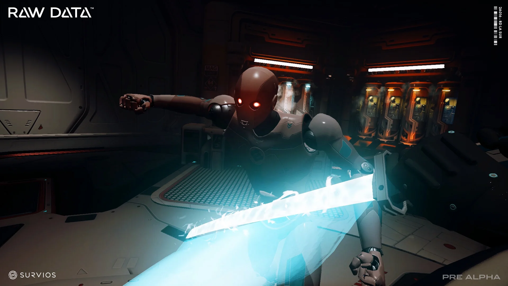 Raw Data is a solo (or co-op) shooter that has players shooting or slashing evil Synth looking robots.