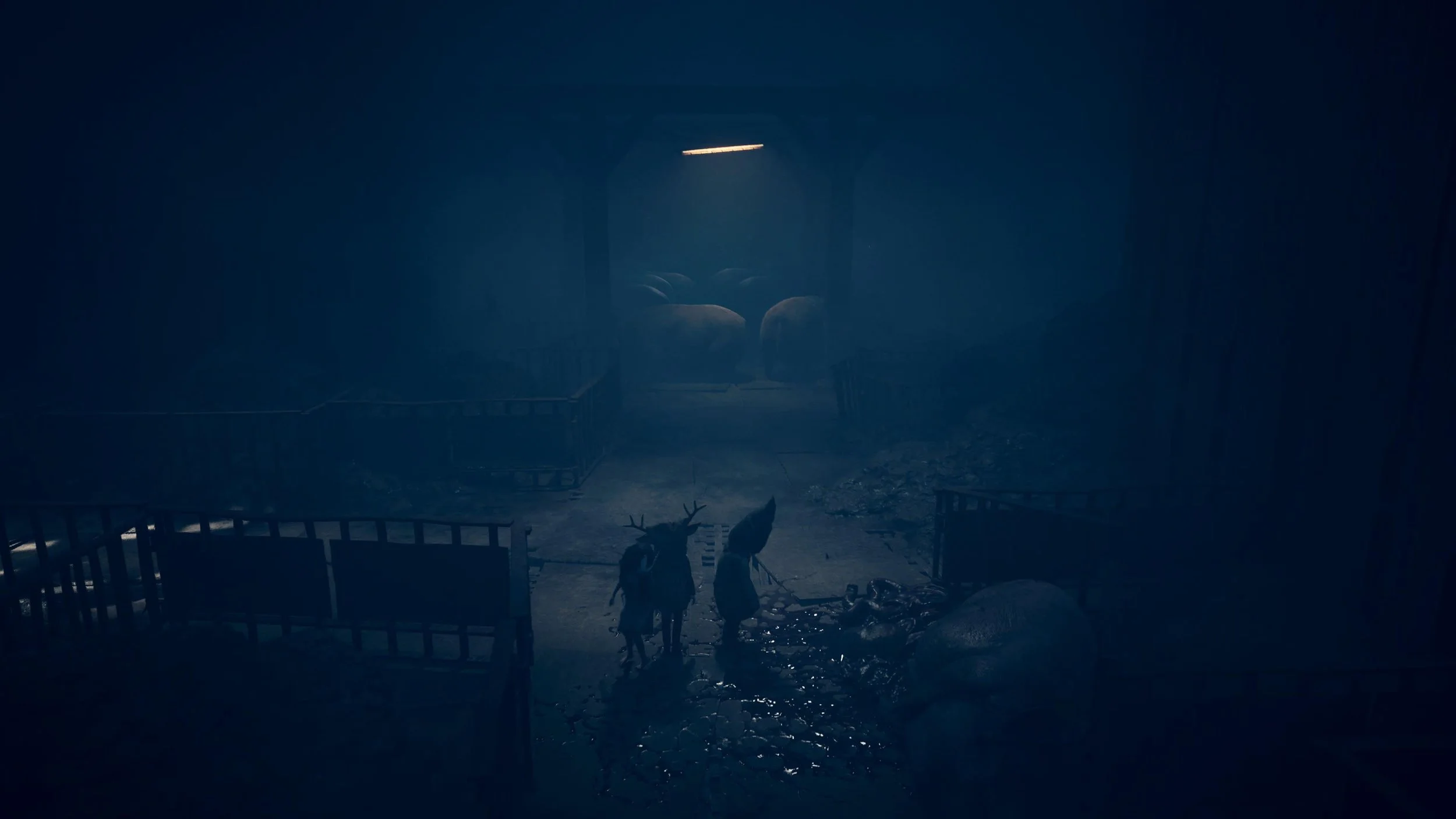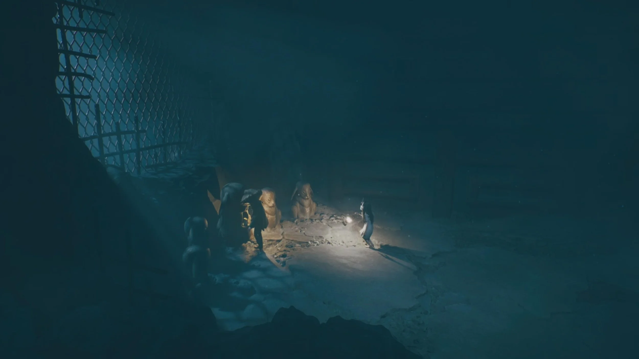 The second hidden statue can be found immediately after using the key to enter the pig barn. Instead of heading forward into the group of pigs, walk south toward the camera.