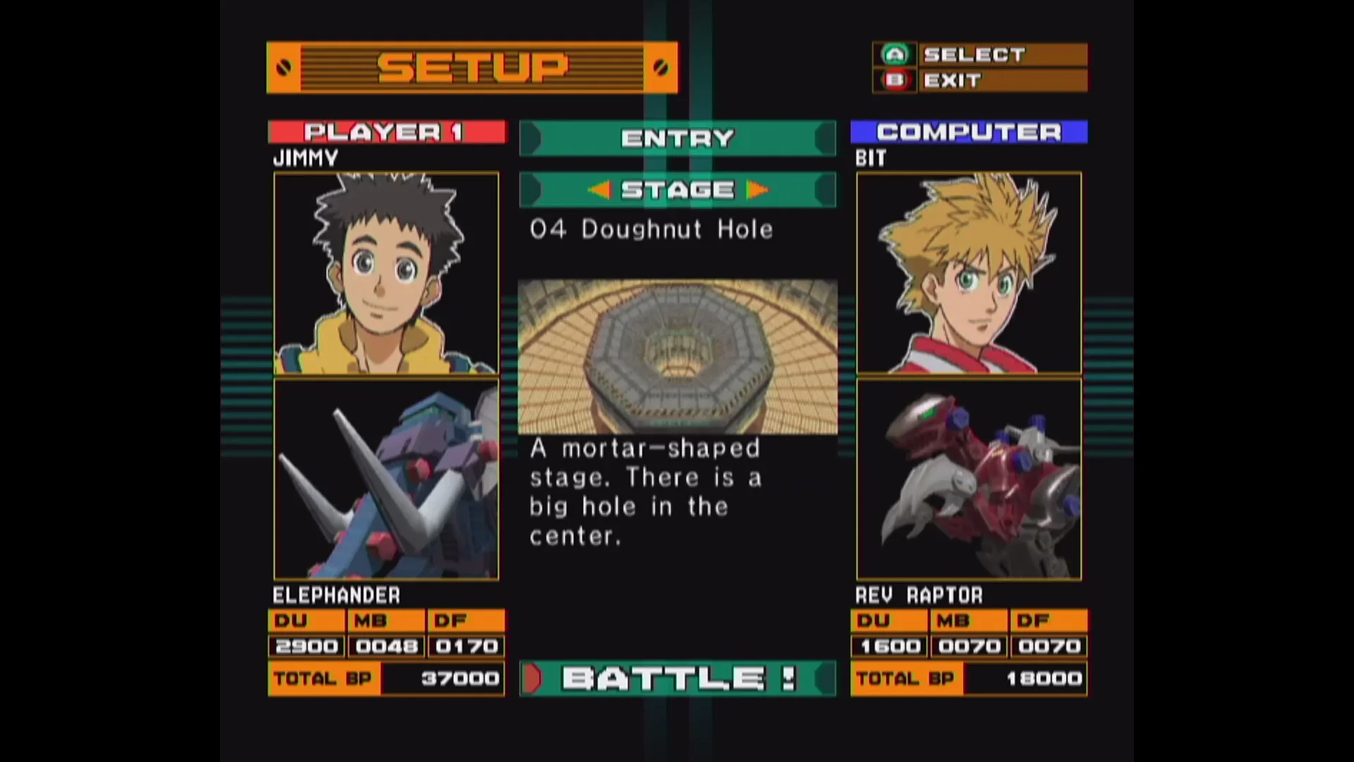 Zoids: Battle Legends has two single player game modes: mission mode and Zoids battle. In the mission mode players will choose to fight for either the Republic or the Empire with 32 missions between them. Regardless of the side you choose, you will play and meet several characters from the Zoids anime to play or fight against. The objective of each mission is simple: destroy all enemy Zoids in the area. Unfortunately this is easier said than done. While combat controls are simple enough-- jump, dodge, melee, fire-- they are marred by a terrible camera and lock on system. The camera is set to a fixed position behind your Zoid and severely limits how far you can see in a level, while the crummy lock on system has trouble prioritizing targets and reduces your combat ability. To further hamper combat, you have no control over your targeting as your reticule is fixed in a single location, forcing you to rely on the lock on system. As you progress through the story you will unlock more characters, Zoids and upgrade parts. Zoids battle mode has 12 missions that players can play alone or with a computer controlled partner. After completing a mission, players are given points to spend on Zoids or upgrade parts.