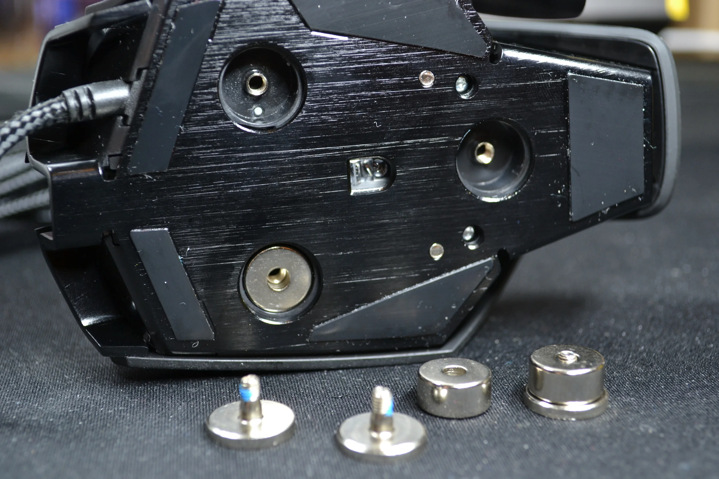 Lastly the mouse has 3 adjustable weights at the bottom that you can easily remove with a coin, each weight adding about 6 grams. What this means is the mouse overall can weigh between 115-135 grams.