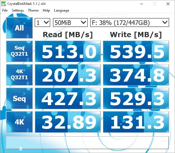 Yes, the drive is purty. Yes, it was very easy to install. No, I didn't have a single issue with any of it and in fact, it looks gorgeous in our gaming rig. So now, the true test. PERFORMANCE. If it's pretty but slow, who cares right? I'm happy to report, PNY blew us out of the water again. Using Crystal Bench, you can see we pulled off some extremely impressive numbers below.