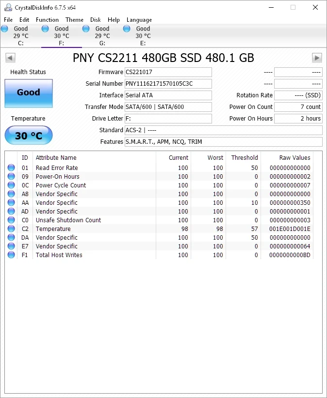 Opening the packaging on a new SSD is always exciting and long gone are the large spinning drives in my gaming rig. Sadly, I have filled my 1TB SSD and so the CS2211 with 480 raw GB, I was ready to rock. Installation and formatting was a breeze and I had no issues whatsoever getting the drive installed or configured. Bam! We pulled some specs on the drive and while nothing fancy, we got an idea of what we were in for.