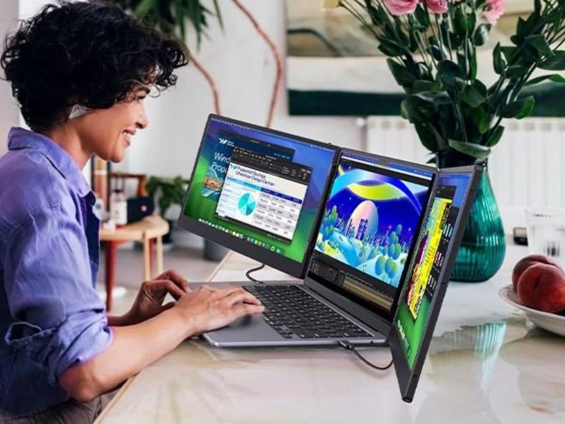 Productivity Gains: Monitoring trends and managing spreadsheets are multiple tasks that are regulated by the triple screen laptop extender, resulting in increased productivity.